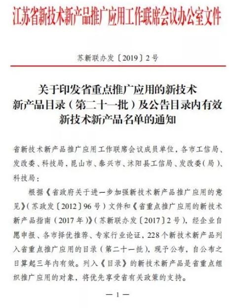 近日,江苏省新技术新产品推广应用工作联席会议办公室下发了《江苏省新技术新产品推广应用工作联席会议办公室文件》(以下简称《文件》)。