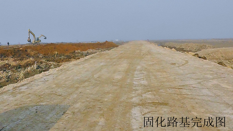荣泰仓储规划区域固化土道路工程位于连云港荣泰化工仓储有限公司产业园内,主要为“L”型道路,全长542m,宽9.4m,固化土路基厚度1.65m,固化土工程量超1万m3。