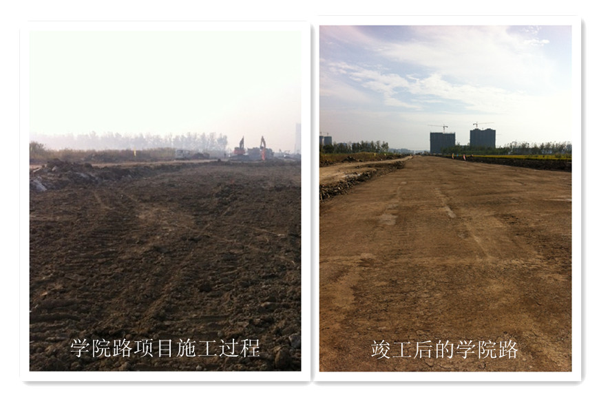 2012年10月25日,由江苏坤泽科技股份有限公司施工的连云港新海新区学院路新建固化土路基项目通过连云港市建设工程质量检测中心成功验收,检测数据全部达到设计标准。这一项目的竣工让坤泽在市政工程领域中的城市道路主次干道建设又增加了一个样板工程。 连云港新海新区学院路项目,与传统采用抛石工艺相比,使用坤泽的固化土技术作为路基后,不但造价降低、路基厚度适当减薄,而且整板性结构更为科学,后期不易开裂,而且施工中的沉降减少了10%-15%。 以其中青峰路—振华路段为例,按照连云港市政设计院的设计要求:弯沉值≤240,施工中需要三次碾压,控制到合适含水率再进行回填。由于江苏坤泽的固化土的整板性好和地基承载力高等特性,使用固化土作路基后,路基的厚度同传统的抛石工艺相比减薄了30%。